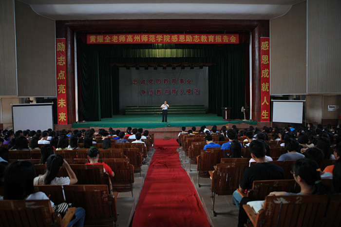报告会邀请了中国校园感恩和励志教育互动演讲的创始人黄耀全老师担任主讲。在报告会上,黄老师用满腔的热情、生动的案例,与我校师生进行深情的互动,演绎了一个在学生中需要唤醒的主题:感恩亲情、感恩父母,感恩老师。黄老师恳切的语言、真诚的情感深深地打动了在场所有人的心,很多同学纷纷走上讲台,对着老师、家长声泪俱下地说出了心中的感受:“爸爸我爱你!”、 “妈妈我爱你!”、“老师您辛苦了,我爱您!”