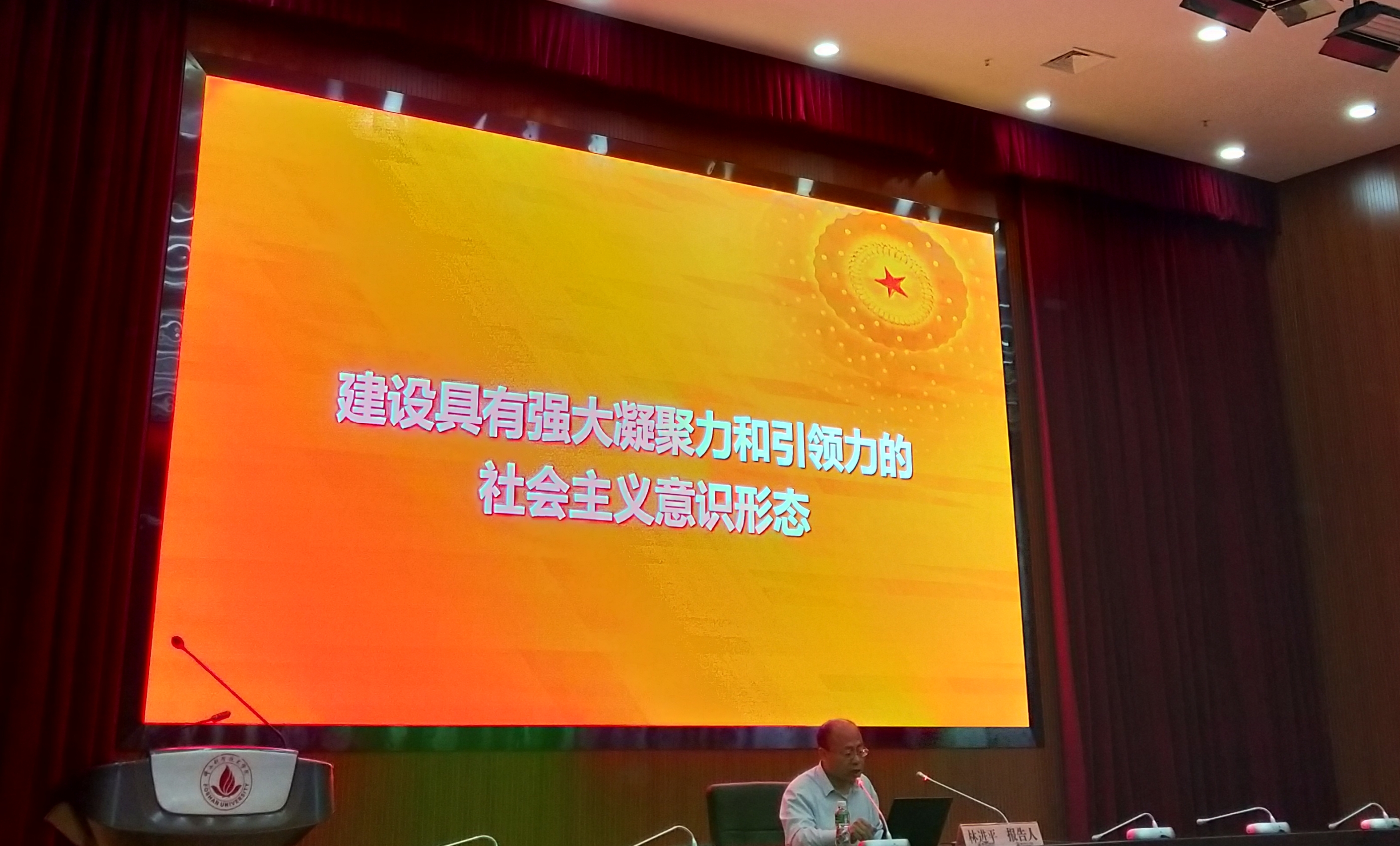 接着,大会为2018年学生工作成绩优异的高校颁发了优秀组织奖和学生事务管理精品项目奖。中山大学和广东工程职业技术学院马克思主义学院代表就高校思政工作分享经验;华南师范大学和中山火炬职业技术学院学生处代表就学生工作分享经验。中山大学马克思主义学院院长林进平教授为大会作了习近平新时代中国特色社会主义思想主题报告:“建设具有强大凝聚力和引领力的社会主义意识形态”。
