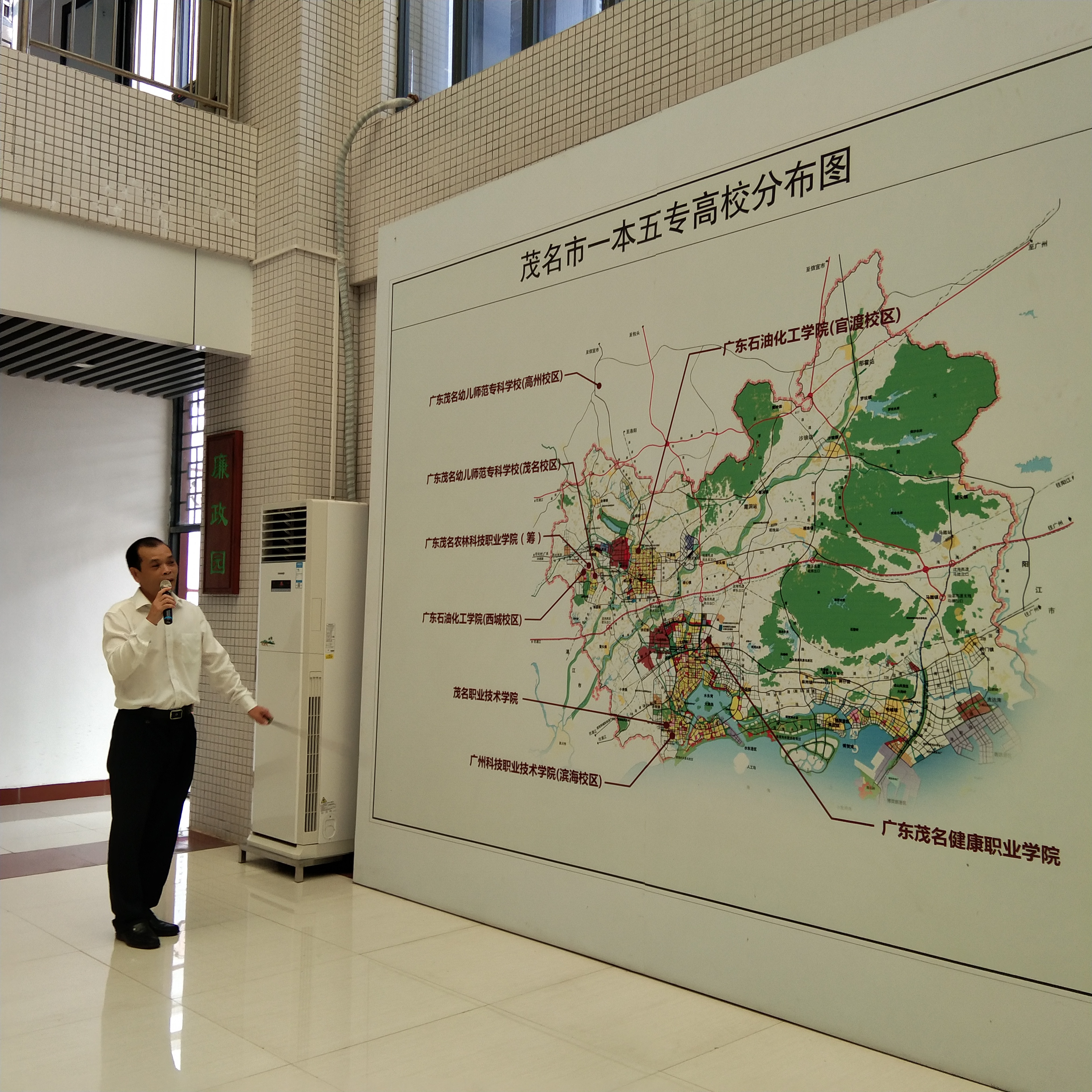 在交流活动中,伍世亮院长对茂名纪监委一行人的到来表示热烈欢迎,并在行政楼中厅向茂名纪监委介绍了学校的发展历程和未来的发展规划,鼓励在场的青年才俊立足岗位,发扬五四精神,为实现民族伟大复兴的中国梦而贡献自己的青春年华。