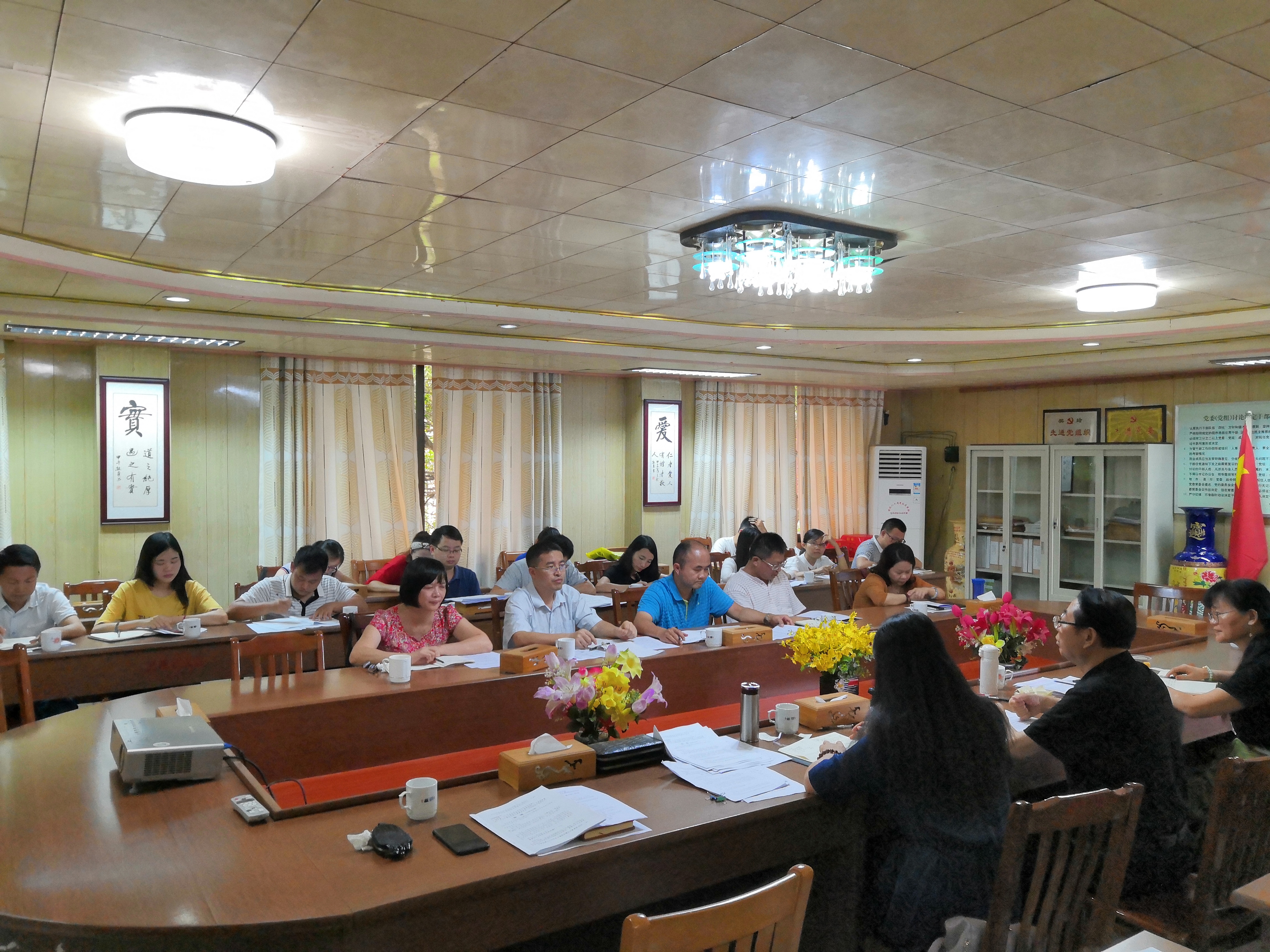 为了在2017级学生中更加顺利开展“中国优秀传统文化教育”活动,进一步弘扬中华文化,传承优良传统,夯实爱国主义与集体主义精神,认真贯彻落实学校“三五”工程的要求。2019年5月22日下午,我校在高州校区行政楼会议室召开了2017级中华优秀传统文化教育活动课前培训,吕清教授、学生处黎雪琼处长、各系书记(学工组长)和全体授课老师参加了会议,张少红老师主持会议。