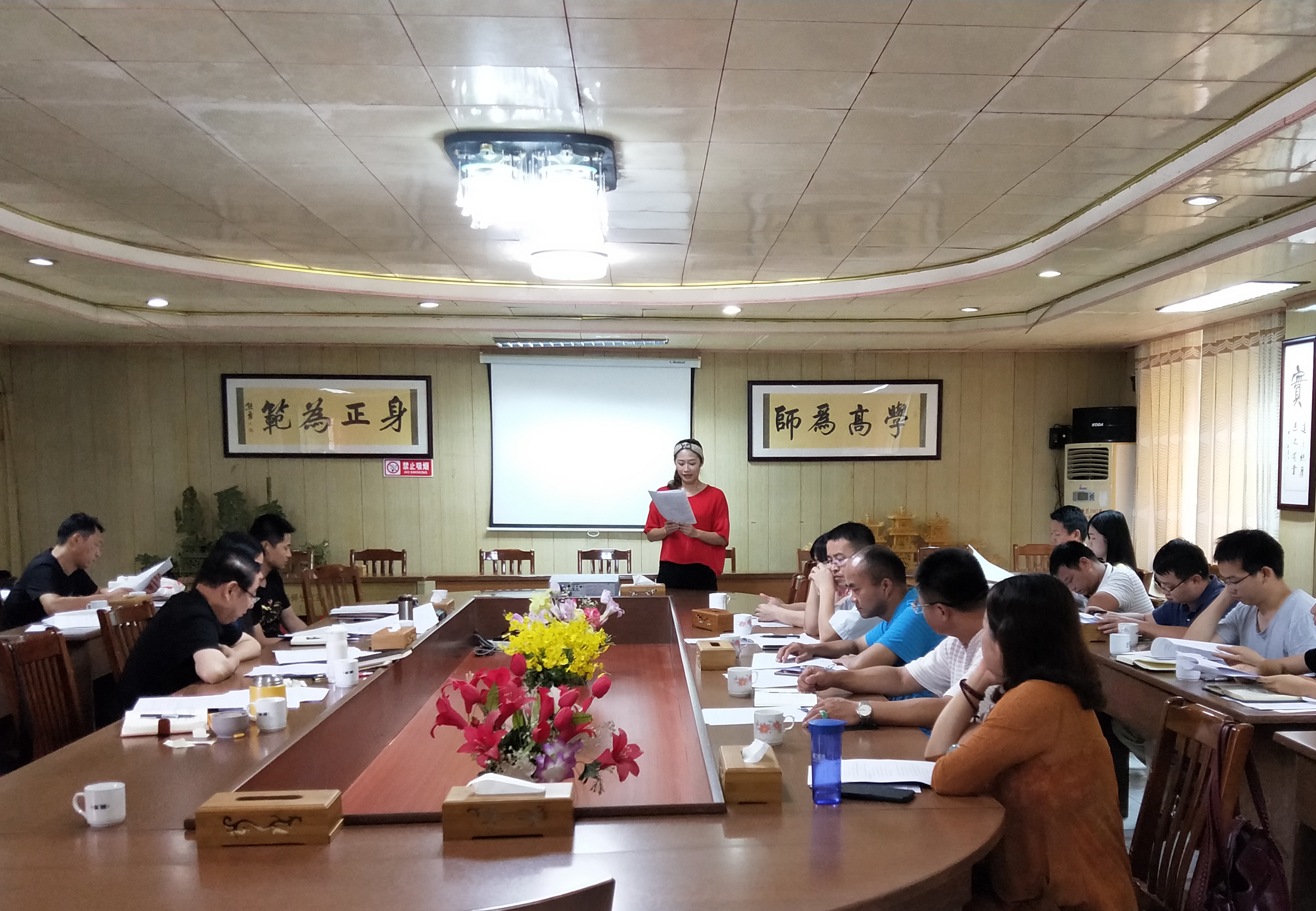 最后,黎雪琼处长希望授课老师思想上能够高度重视,把传统文化教育活动作为近期工作的重点来抓,做好充分的准备工作,力求传统文化教育活动达到最好的教育效果。会后,全体参会人员到行政楼前参与学习了传统文化课的上课入场模拟演练。该次的课前培训,为接下来传统文化教育活动的顺利开展奠定了良好的基础。