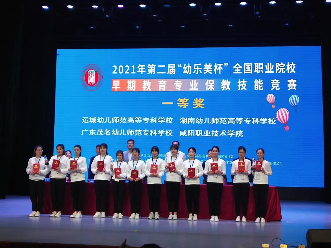 5月22日,第二届“幼乐美杯”全国职业院校早期教育专业保教技能竞赛在济南幼儿师范高等专科学校隆重举行,我校早期教育专业代表队技压群雄,在全国69支参赛队伍中脱颖而出,荣获团体一等奖。