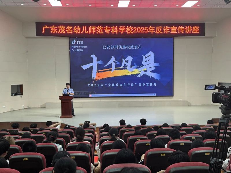 为增强我校师生的防骗意识,提升自我保护能力,9月28日,我校特邀茂名市公安局刑侦支队反诈骗中心民警曾航同志作反诈专题讲座,学生工作部副部长李德伟、全体学生共同参与学习。
